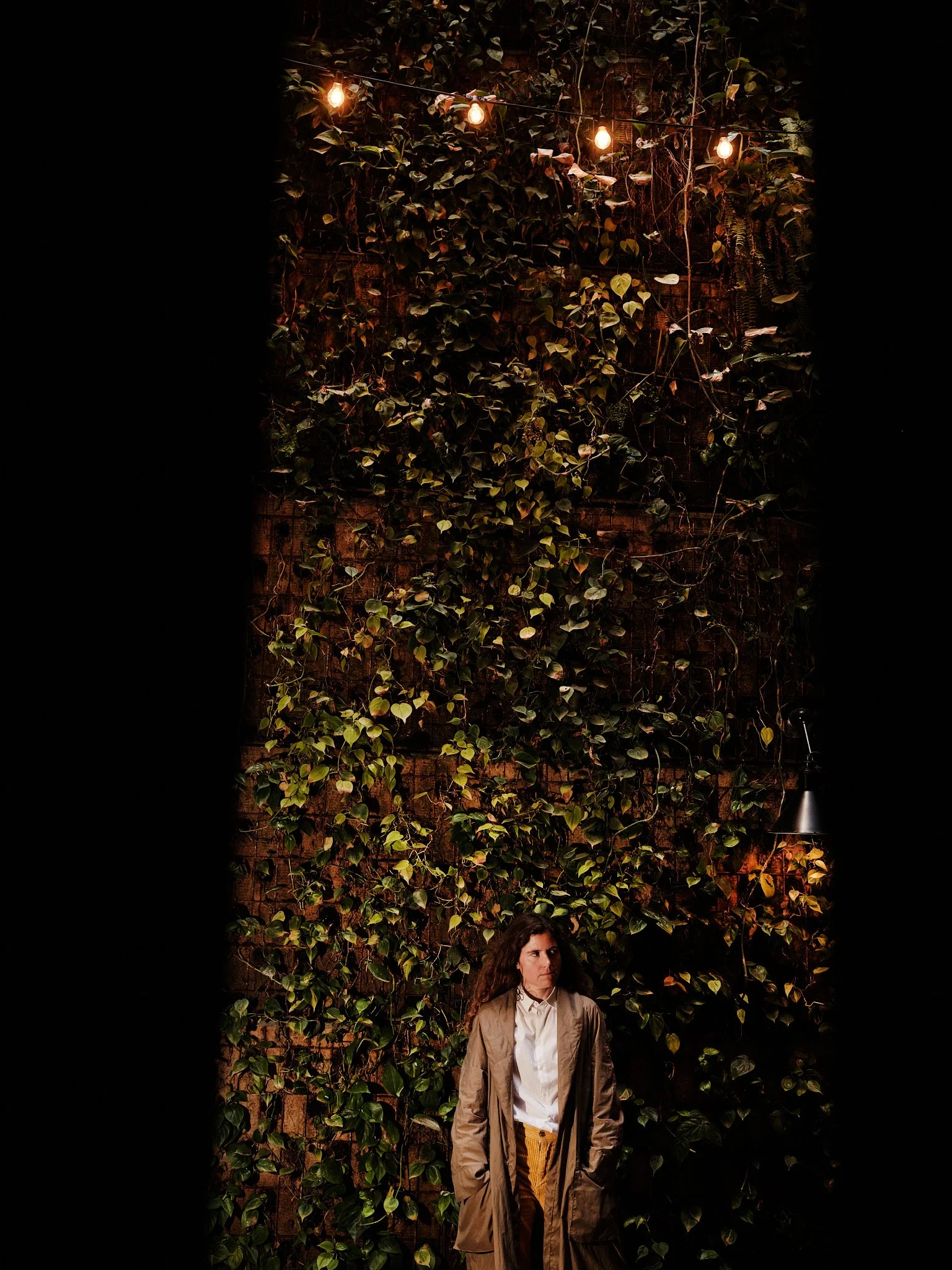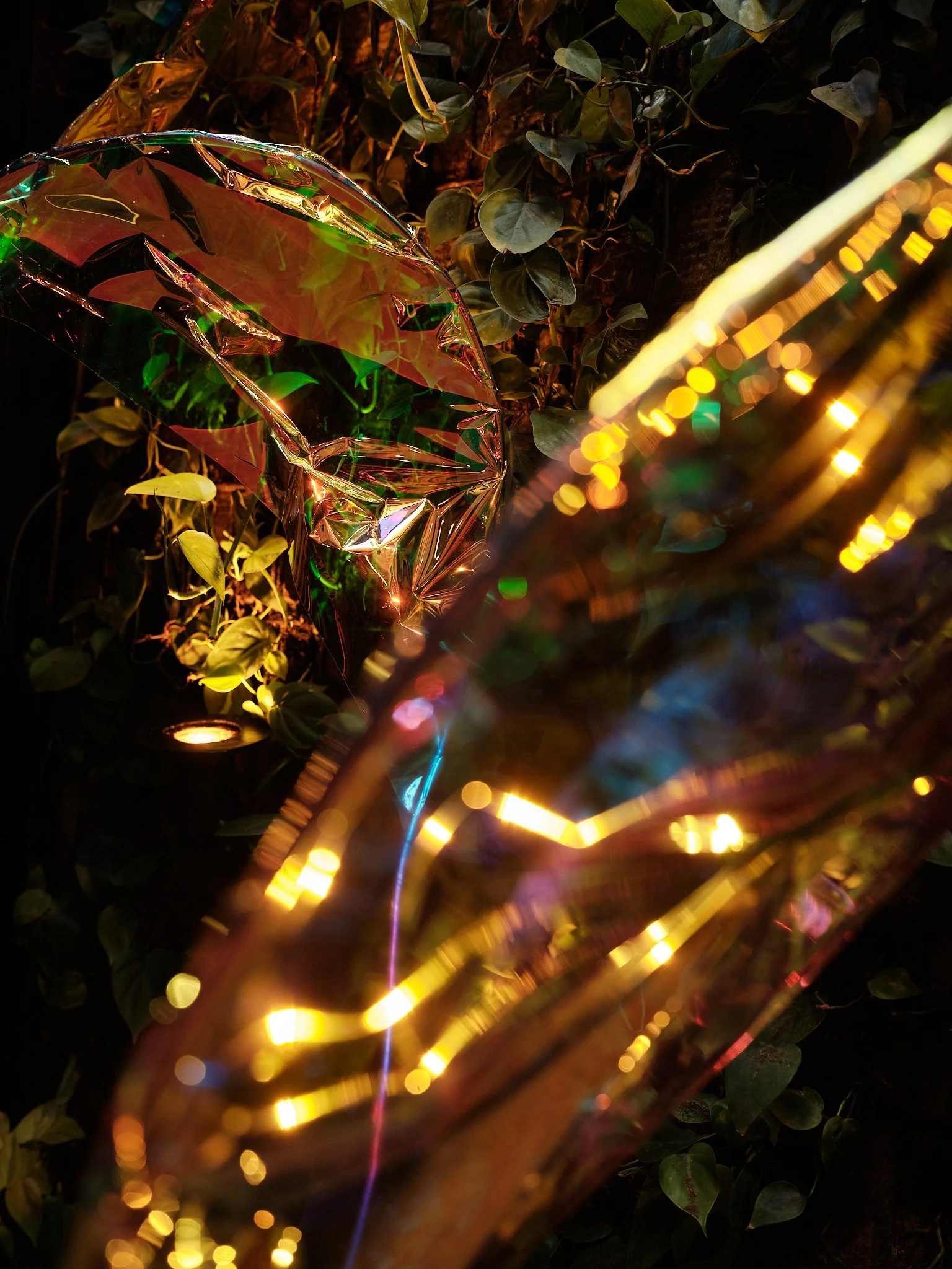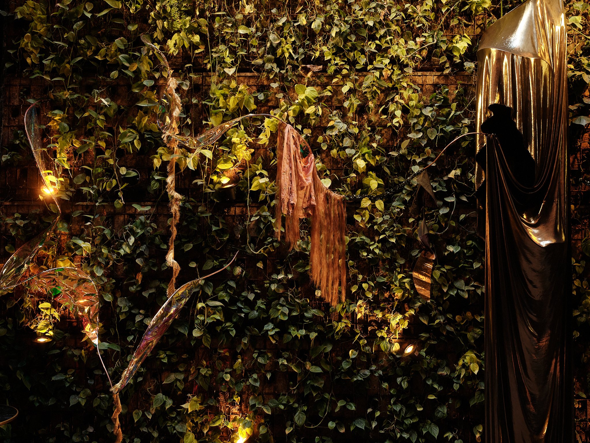 Her organic attunement to invisible forces and ecological systems makes her intervention at Hotel Wittmore particularly resonant. In response to the site, she proposes and creates CAUIRIS PETALLUM, a temporary installation integrated into the hotel’s vertical garden. There, the work enters into a living exchange with vegetal growth, light, and architectural enclosure, extending the garden’s sensorial and symbolic dimensions.